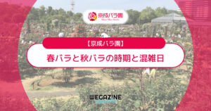 京成バラ園のバラが1番見頃のシーズンや、シーズンごとの混雑状況について解説しています。