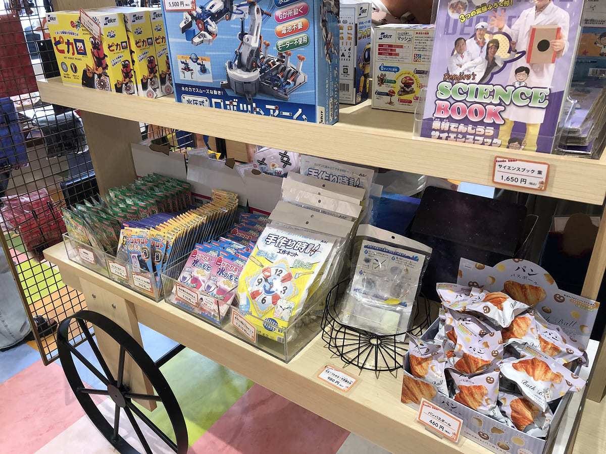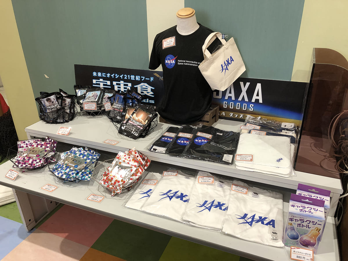 お仕事体験の協賛企業でもあるJAXAのグッズが販売されています。我が家は宇宙グミと宇宙食のチョコレートケーキを買いました。